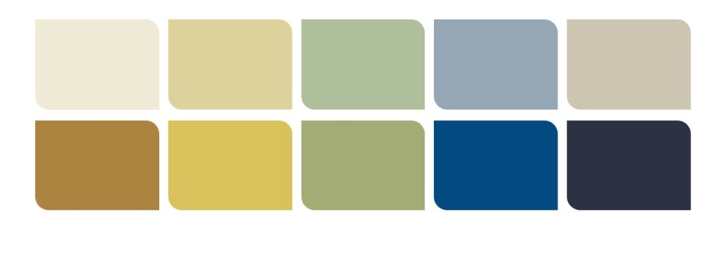 Los verdes salvia, oliva suave y tonos tierra evocan calma, conexión con lo natural y equilibrio.